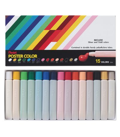 Pentel Poster 15 Colors Set Premium Quality 12ml Tubes