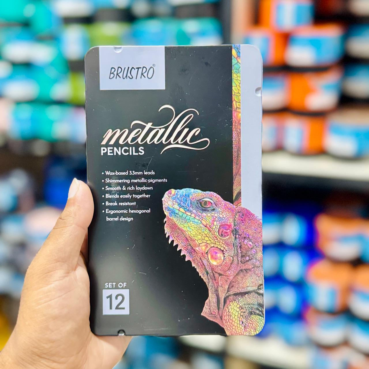 Brustro Metallic Pencils — Set of 12 | Wax‑Based 3.3 mm Cores