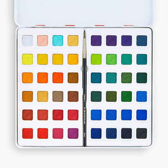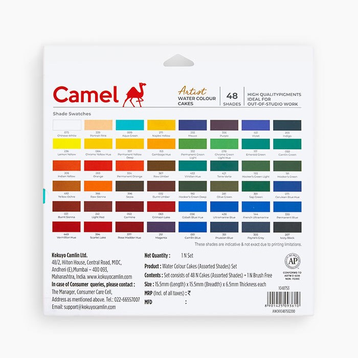 Camel Artist Water Colour Cakes Set 48 Shades with Brush