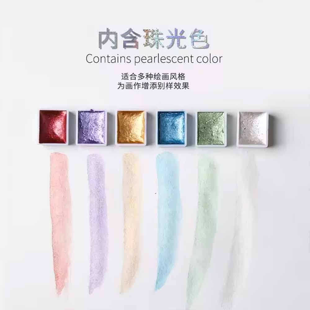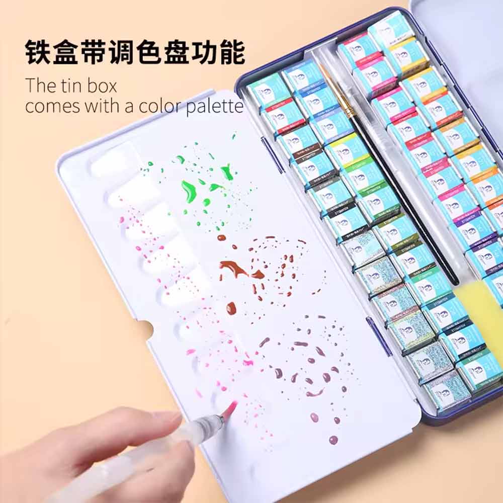 Giorgione Solid Metallic Glitter Watercolor Tin Box Paint Set of 36 with Free Gifts