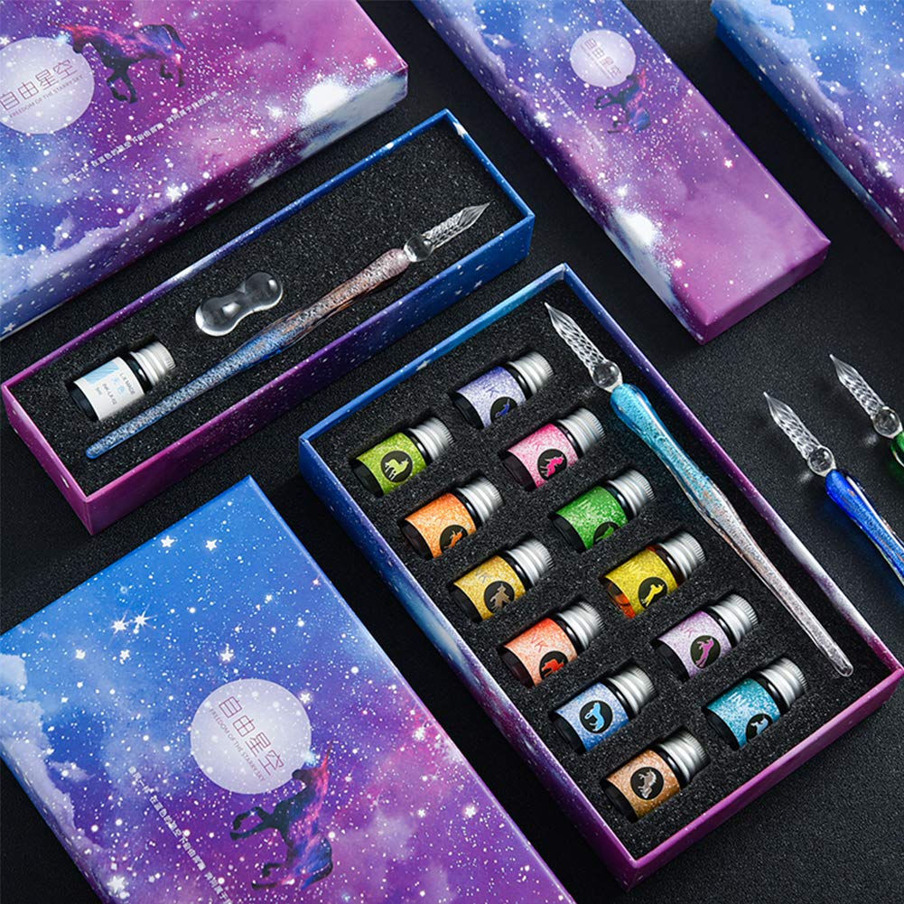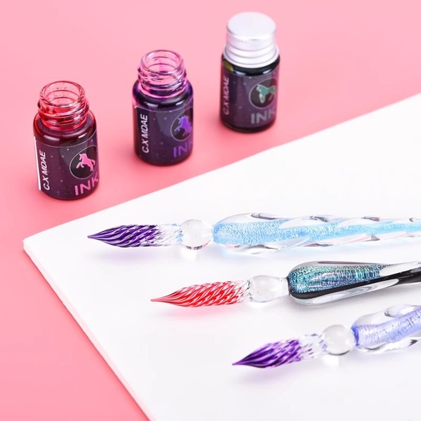 Glass Pen Dip Pen Set Student Crystal Pen Gift Box (Multi Design)